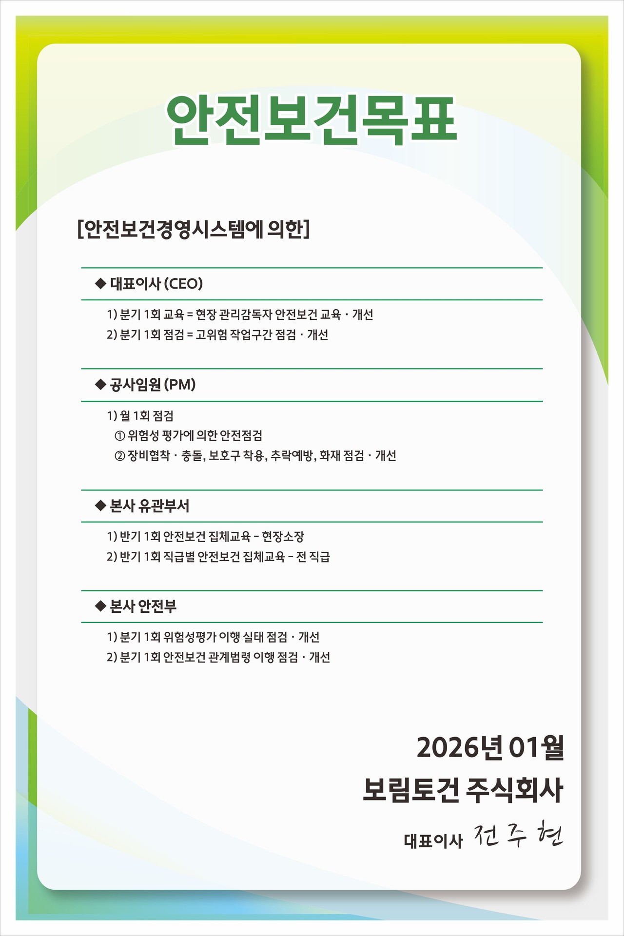 안전보건경영 방침 및 목표
