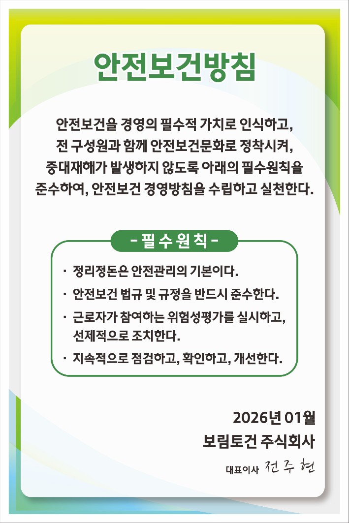 통합경영시스템의 성공적 실천을 통한 조직에너지의 상승효과를 기반으로 품질경영 및 환경·안전경영 요구사항을 적극적으로 준수하고 세계일류 건설기업으로서 자리매김하며 고객에게 다가서겠습니다.